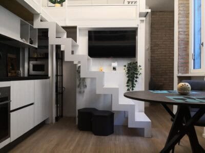 È concepito per essere assemblato completamente a secco appoggiato su quattro plinti e con una struttura in Xlam che garantisce stabilità alla struttura.